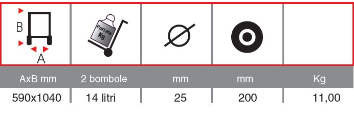 fier si rulmenti. Cadru din teava sudata Ø mm 25. Suport lateral si platforma personalizata pentru doua tuburi de 14 litri. Este dotat cu lant de siguranta, caseta scule si suport.