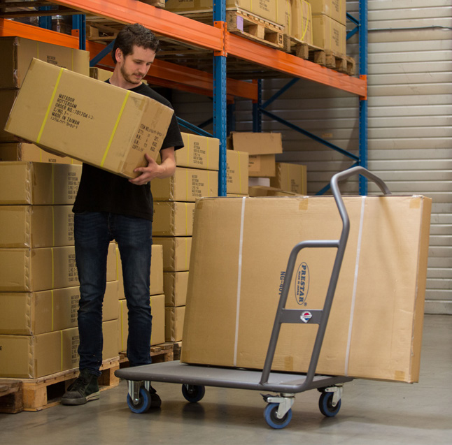 Produs cu un cadru din oțel vopsit și o suprafață ranforsată, caruciorul vă permite să mutați confortabil greutăți mari în jurul depozitului cu un efort minim din partea operatorului care menține o postură perfectă.