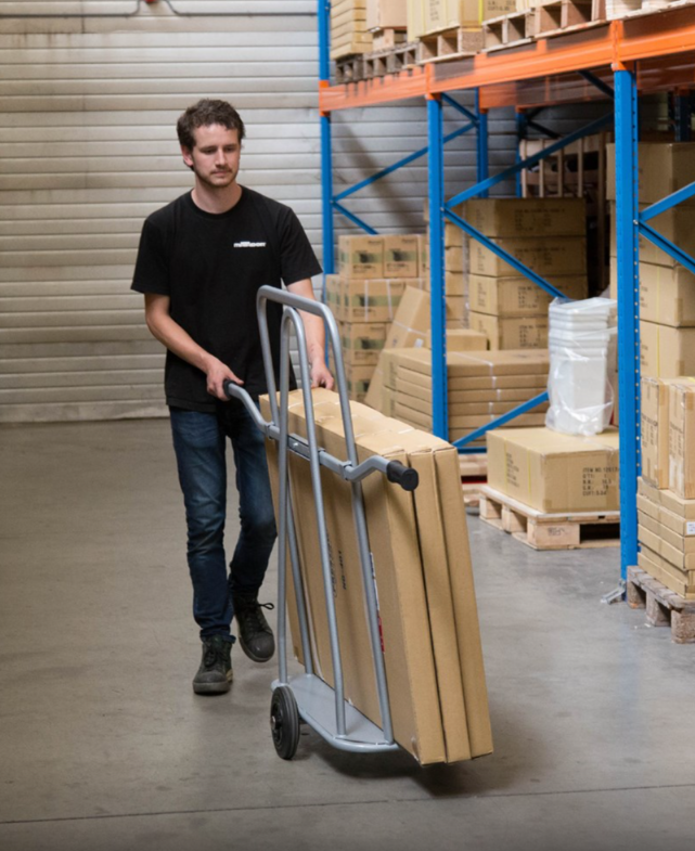 Cărucior profesional din oțel pentru transportul oricărui panou mare, ușă, tablă sau fereastră.