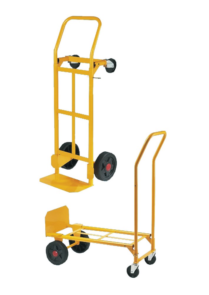 Transformabil pentru utilizare verticală pentru cutii și colete și orizontal pe 4 roți pentru încărcături voluminoase.