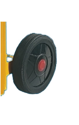 Anvelope solide ø 200 mm cu butuc din plastic; 2 roti pivotante ø 100 mm.