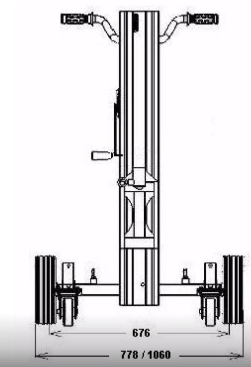 - Două roți din spate de Ø 250 mm cu ampatament reglabil până la 1060 mm pentru o mai mare stabilitate.