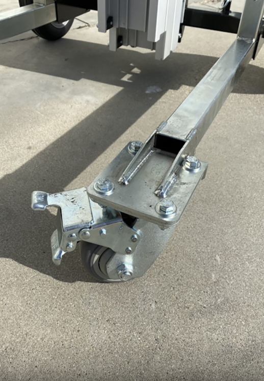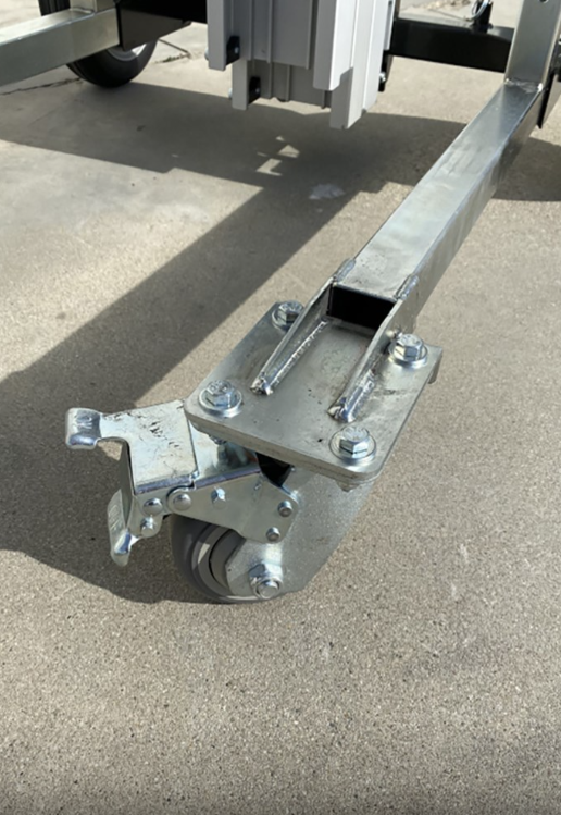- Picioare cu roti Ø 76 mm, rotative si echipate cu frane