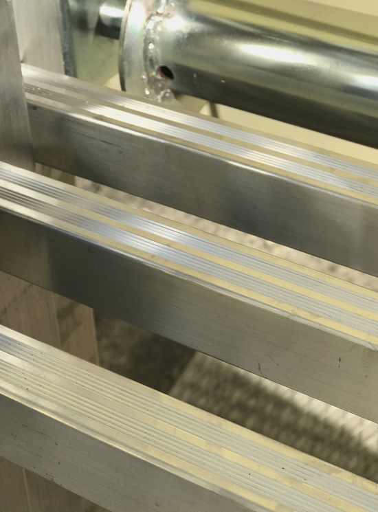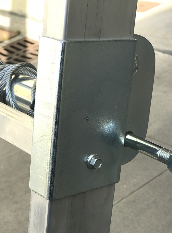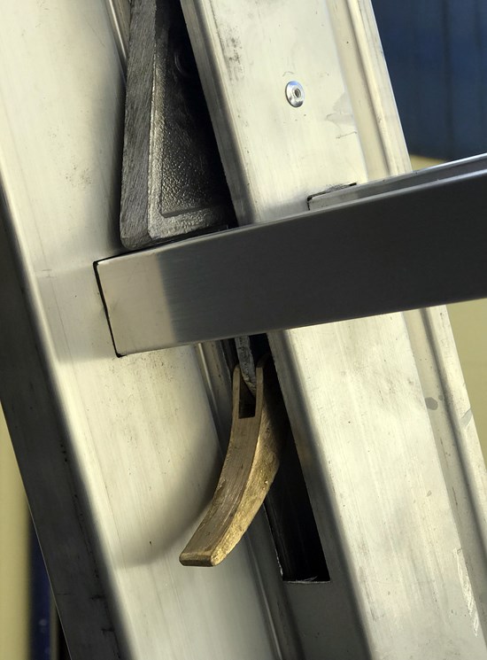 Scara de aluminiu cu mecanism de deschidere a celor doua tronsonae superioare cu ajutorul unei funii metalice si a unei manivele. Sistemul este pe baza de manivela.