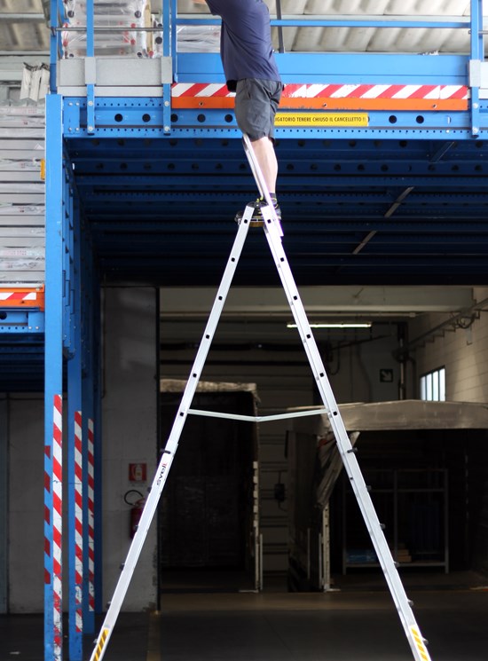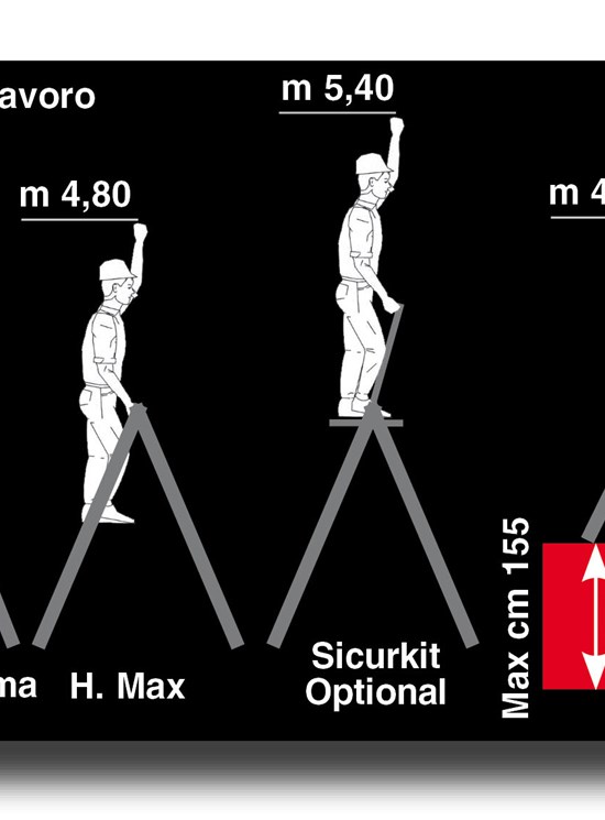 Un produs profesional cu dubla urcare ce poate fi folosit doar pe un stand cu o inaltime de lucru de aproape 5 metri care ajunge la 5,4 metri cu platforma/balustrada optionala Sicurkit.