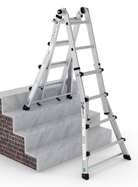 Scara telescopica din aluminiu cu mai multe pozitii, prevazuta cu balama automata pentru blocare. Este usoara si poate fi folosită atât în interior, cât și în exterior.