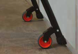- Roțile sunt încărcate cu arc; doar împingeți platforma cu piciorul și pentru a o deplasa, nu este nevoie să o ridicați.
