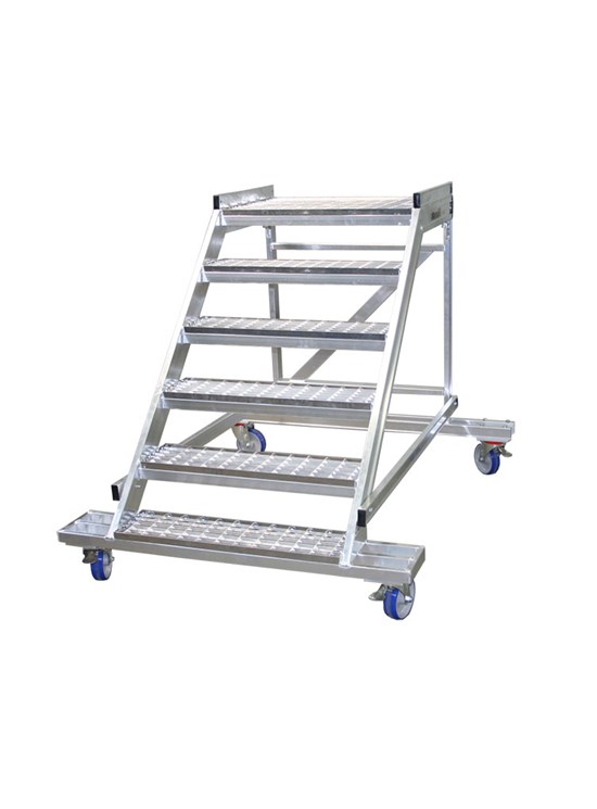 Scara pentru intretinere industriala si acces auto cu 4 roti antiamprenta cu diametrul de 150 mm si frane