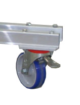Echipata cu 4 roti de Ø 150 mm cu frana pentru a fi impins de catre operator in toate directiile pe teren plan, fara a fi nevoie sa fie ridicata de la sol.