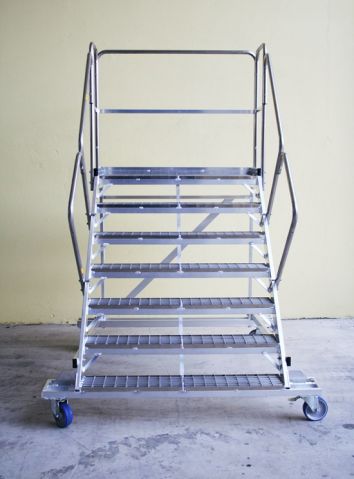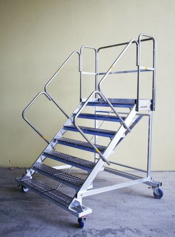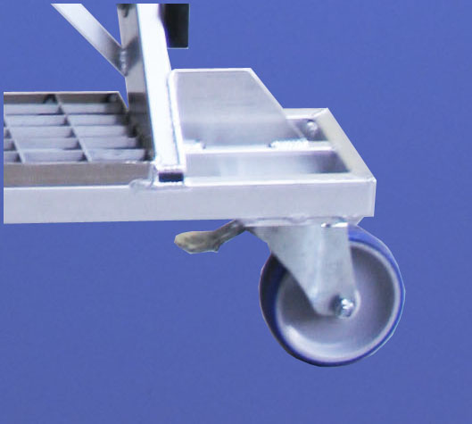 Scara este echipata cu 4 roti cu frane Ø 150 mm pentru a fi impinsa de catre operator in toate directiile pe teren plan, fara a fi nevoie sa fie ridicata de la sol.