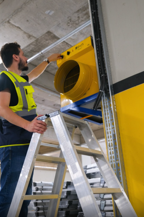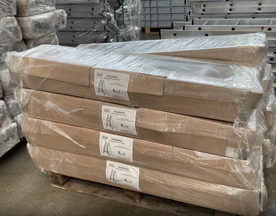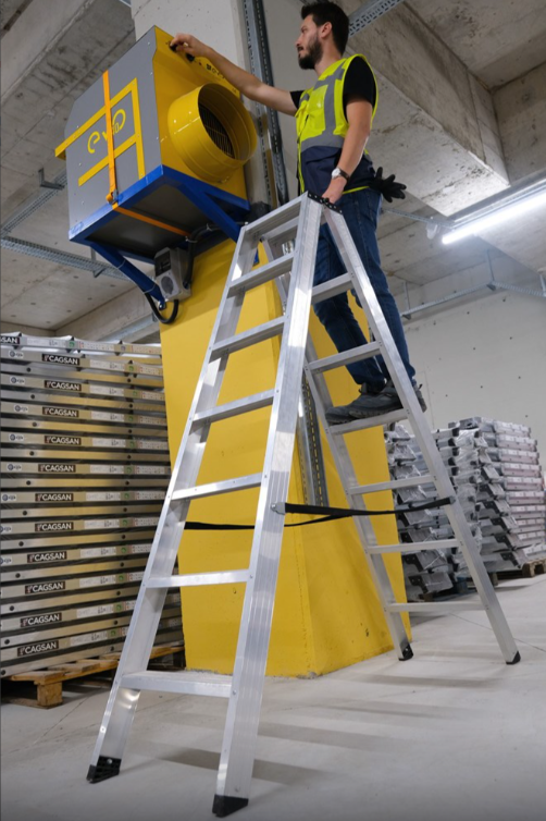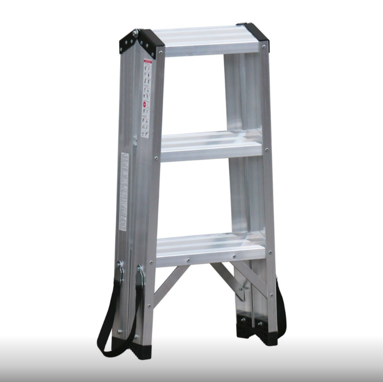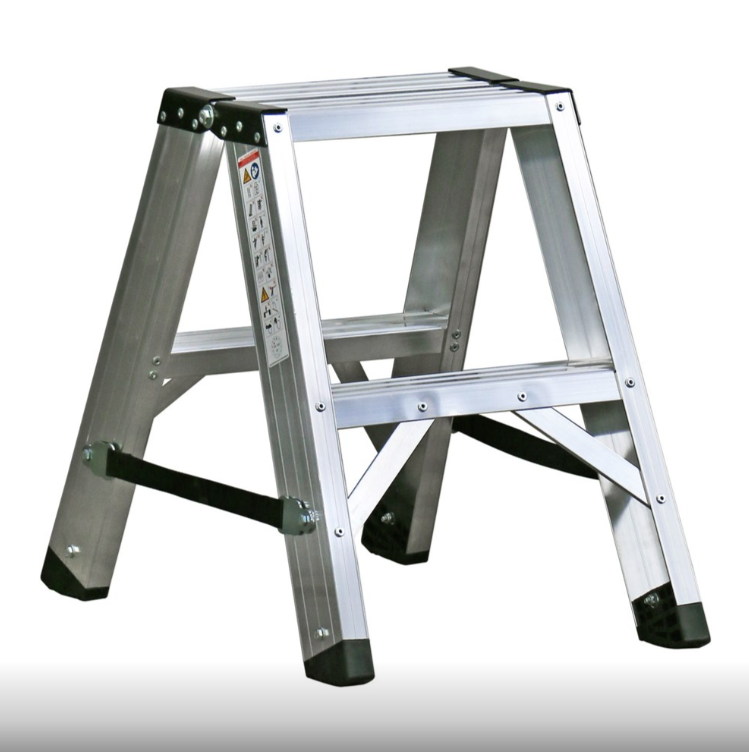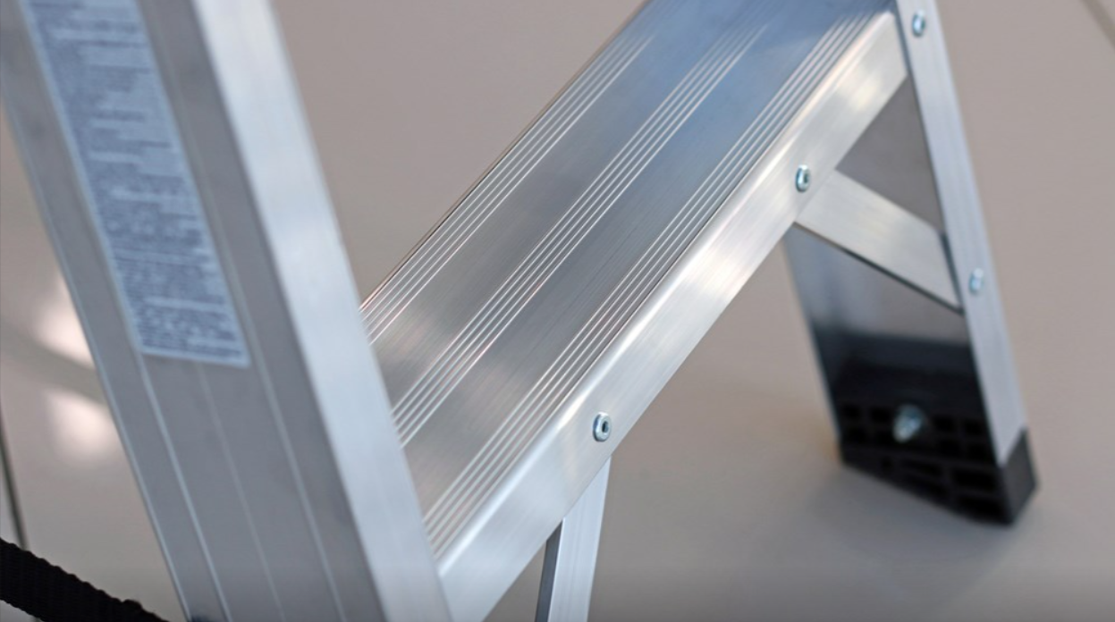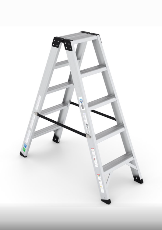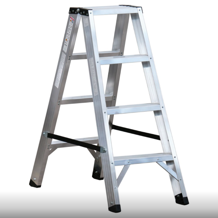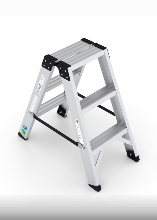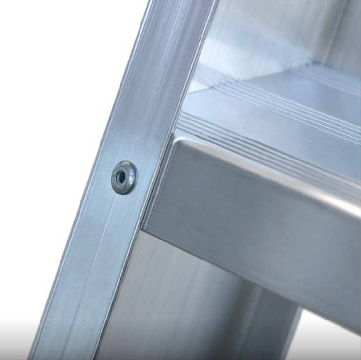 Scara dubla din aluminiu cu trepte plate nituite pe montanti
