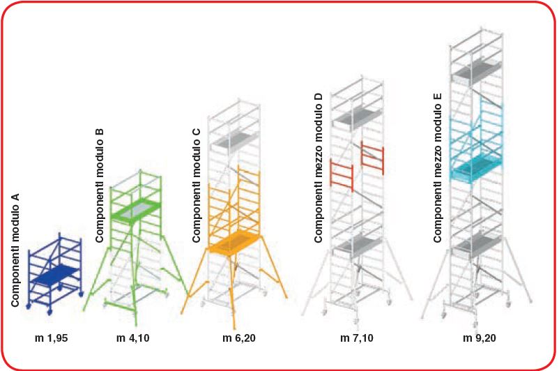 Fiecare modul vine ambalat intr-un pachet unic pe care este descrierea si pozitionarea lui in cofiguratia schelei. Distribuitorul poate intr-un mod usor sa individualizeze modulul corespondent la inaltimea ceruta fara a fi nevoie e coduri, sau sa controleze componentele.