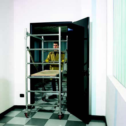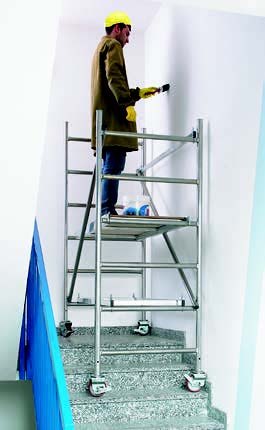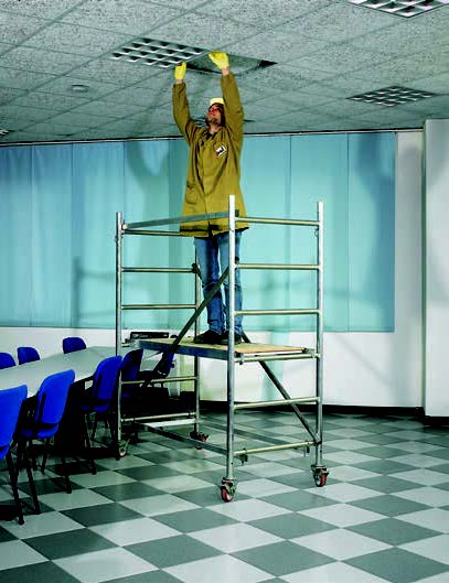 Este ideala pentru lucrari de sisteme uscate sau umende sau lucrari de intretinere. Este construita din teava de aluminiu ø 42 mm cu trepte antialunecare. Numarul mic de componente fac ca aceasta schela sa fie usor de montat in cateva minute fara scule.