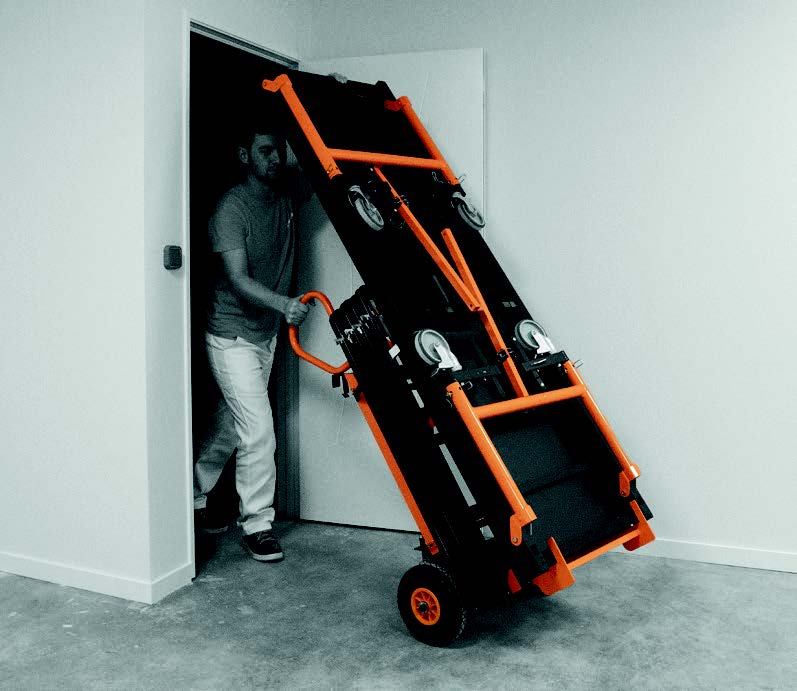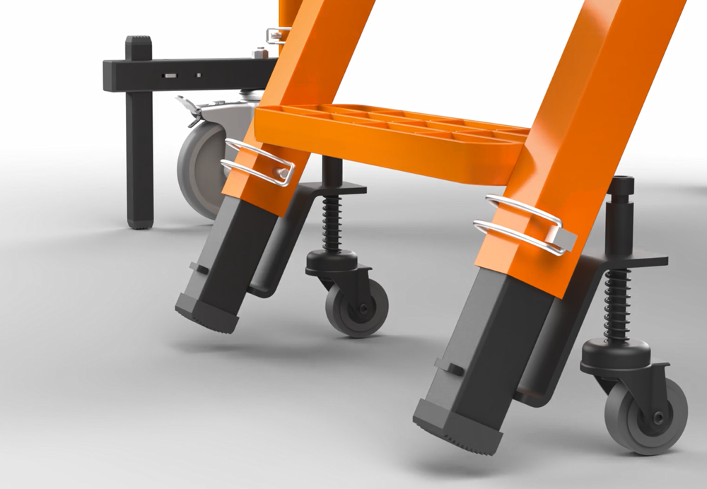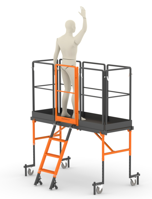 - Platformă din lemn anti-alunecare certificată FSC. Trecerea printr-o ușă este posibilă prin rotirea stabilizatorilor.