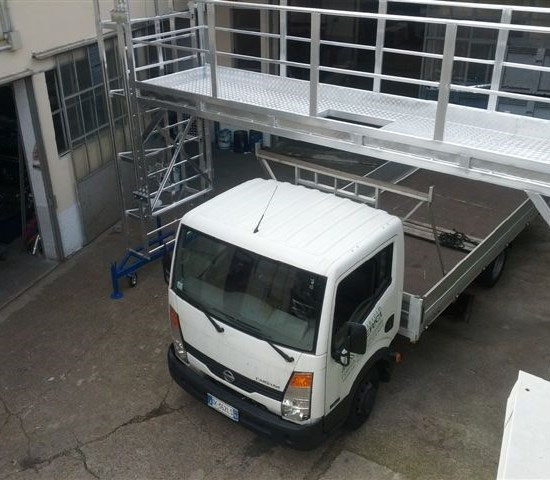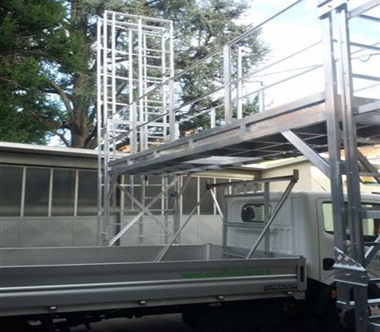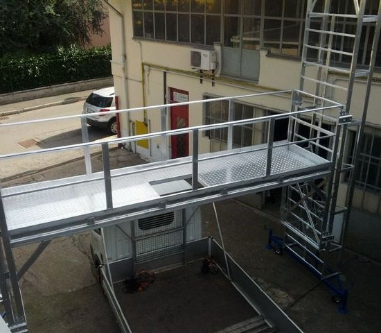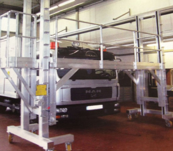 Platforma fabricata din aluminiu sau mixt aluminiu/otel, ultra-rezistenta, ideala pentru lucrul pe lateral, fata si acoperisul cabinelor camioanelor. Ideala pentru întreținere sau producție.