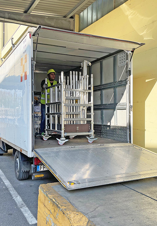 Odat? desc?rcat, modulul de baz? Sveltower devine un carucior capabil s? transporte toate componentele necesare asamblarii. Masurand doar 74 cm latime, trece prin usi ?i coridoare ?i intr? în lifturi ?i furgonete standard.